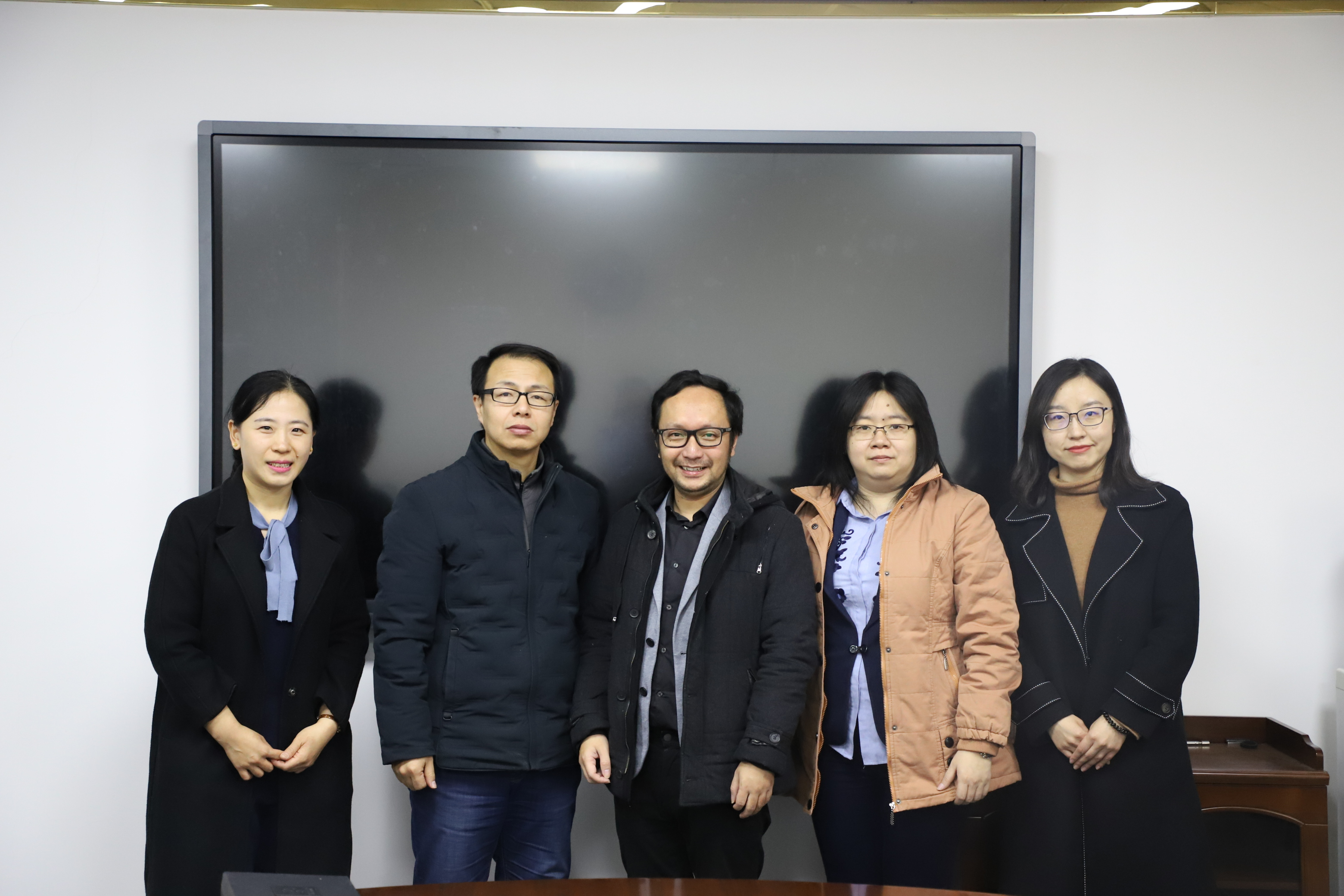 12月12日,印尼玛拉拿达基督教大学第三副董事长罗比·尤萨·泰勒 (ROBBY YUSSAC TALLAR)、印尼玛拉拿达基督教大学孔子学院外方经理陈丽雅(Septerianie Sutandi)在国际合作交流中心马岚老师的陪同下到公司交流。张志杰经理、白玫副经理参加了座谈。